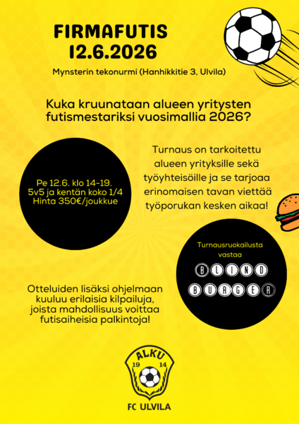 Firmafutis tulee jälleen vuonna 2026! Pelipäivä on perjantaina 12.6.2026. Ilmoittautuminen on nyt käynnissä!